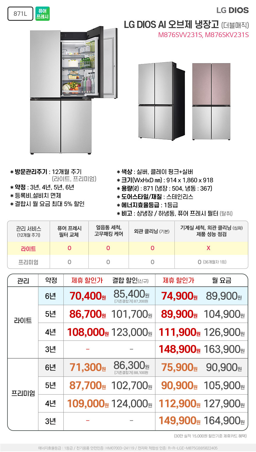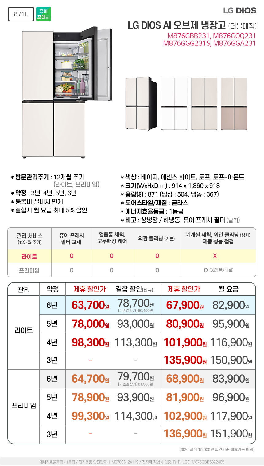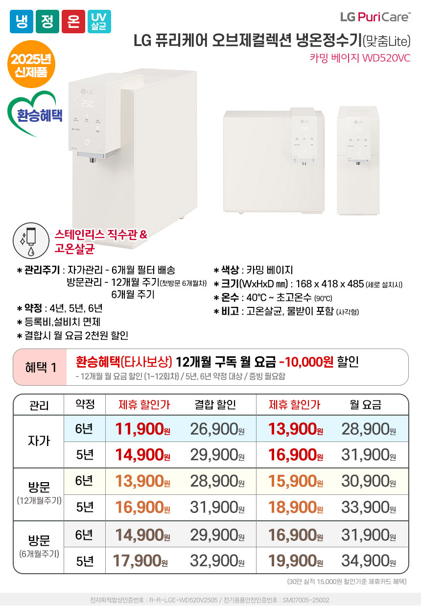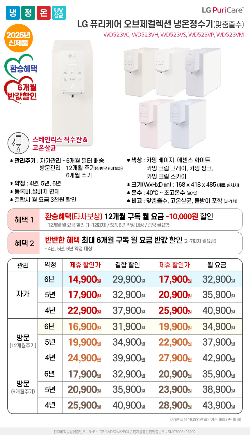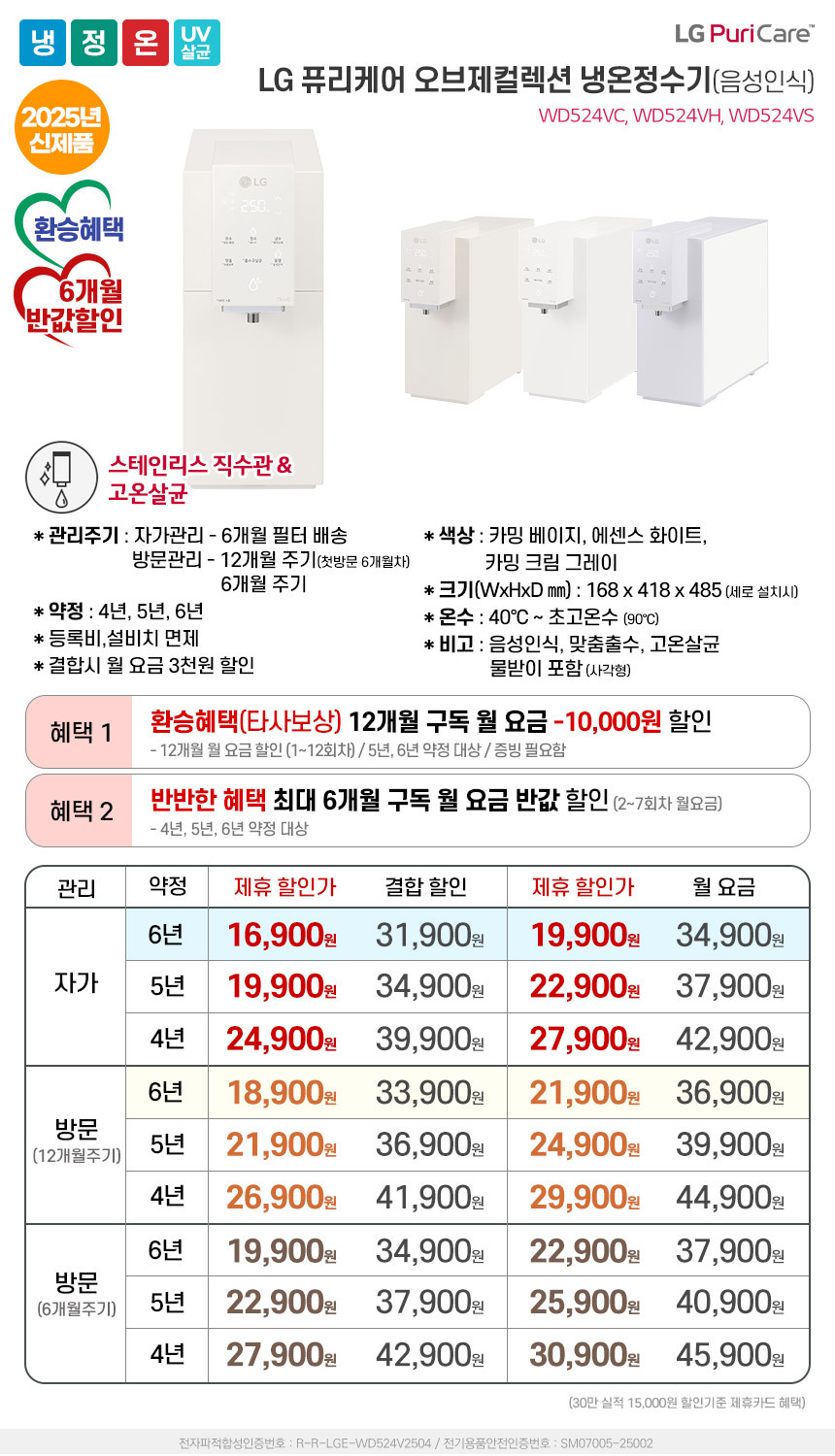 LG전자 퓨리케어 구독 모음전/정수기/공기청정기/전기레인지/식기세척기/의류건조기/에어컨